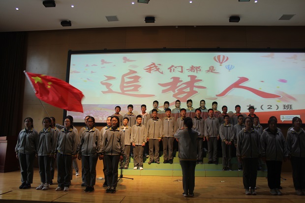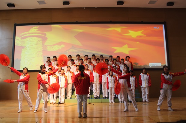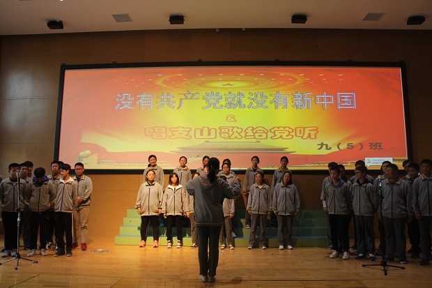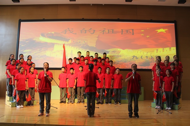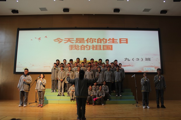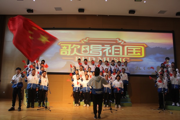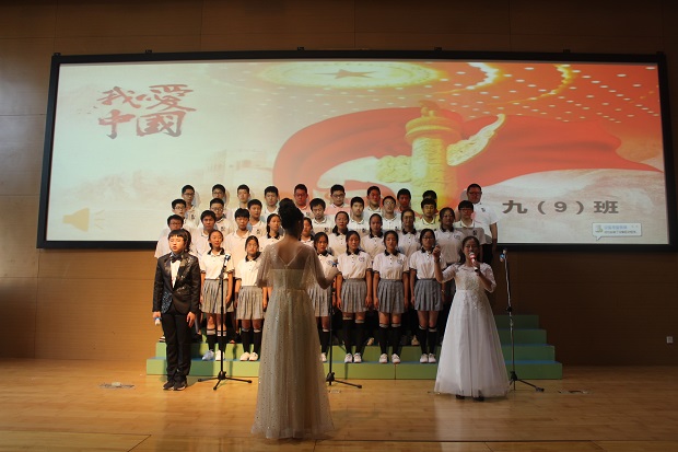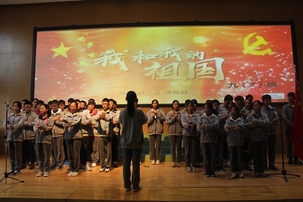 各班参赛方队用饱满的激情和高亢嘹亮的歌声赞美伟大的祖国。《我的祖国》、《我和我的祖国》、《我爱你,中国》、《今天是你的生日,我的祖国》、《我们都是追梦人》、《唱支山歌给党听》……一首首经典红色歌曲在校园内久久回荡,不仅勾起大家对中国革命的峥嵘岁月的回忆,歌声也饱含了全体学生对祖国的祝福。同时也表达了大家作为新时代的中学生,要为国家繁荣昌盛,为民族复兴而努力学习的信心和决心。最终,九(1)、九(5)、九(9)这三个班级在激烈的比赛中获得一等奖。