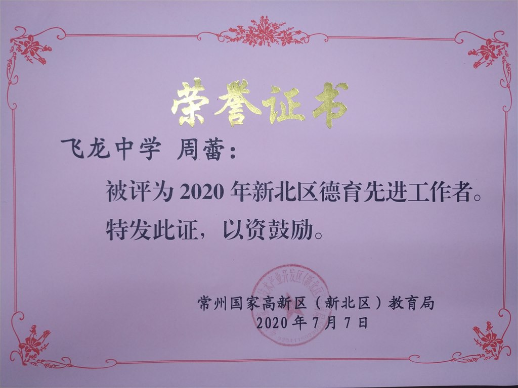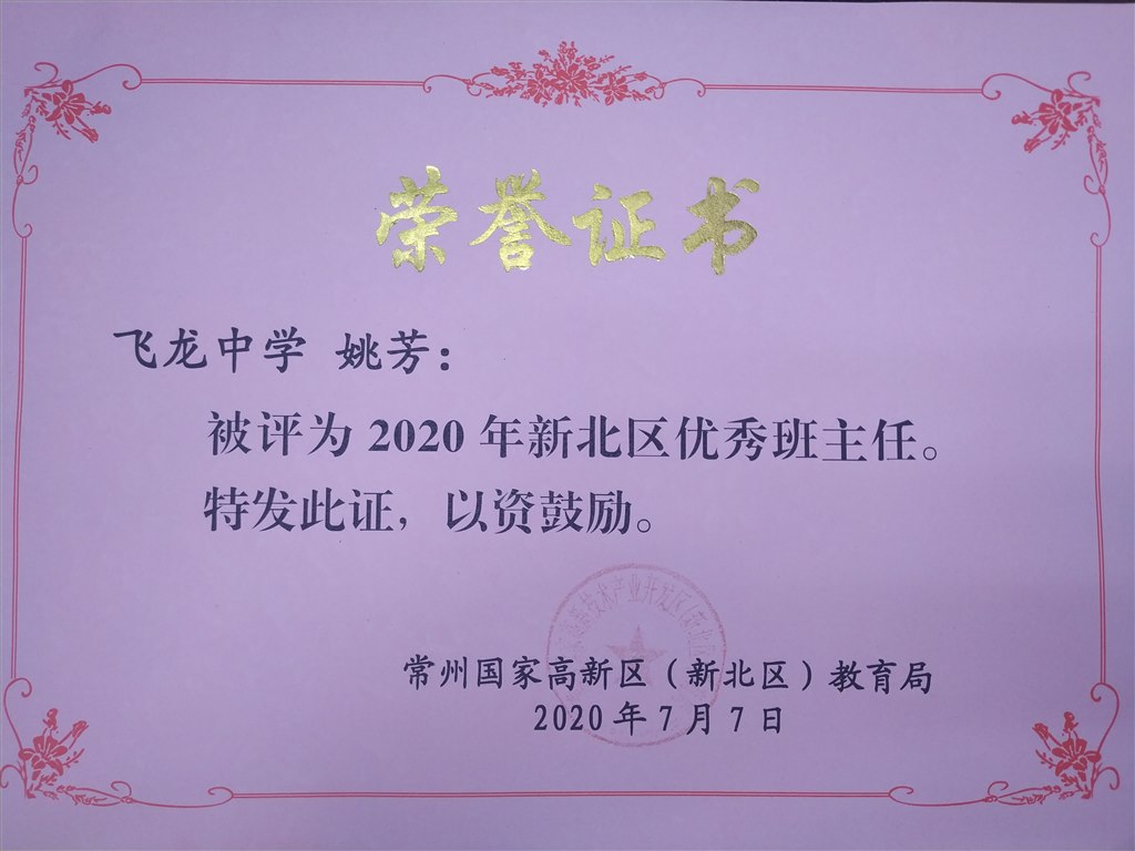 热烈祝贺我校姚芳老师被评为“新北区优秀班主任”,周蕾老师被评为“新北区德育先进工作者”!
