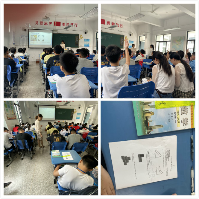 (2)左视:从听课者的角度来看,课堂氛围极其融洽和谐,老师善于引导,学生乐于参与,师生和生生的交流碰撞出了很多智慧和文化的火花。如学生熟练自然地用苏东坡的诗句来刻画数学中因观察物体的不同视角而带来的视觉差异,这种在老师的预设之外产生的学科碰撞和交融之美,让课堂洋溢着充满活力的数学之美、以及教育和谐的脉脉温情。(3)俯视:从老师角度来看,学生课堂上的踊跃发言和精彩回答,无疑是对老师智慧课堂的最好反馈以及肯定。俯下身来,学生的优秀表现,对于老师而言,也是促进老师成长的有利资源,课堂是老师与学生共成长的最主要阵地。