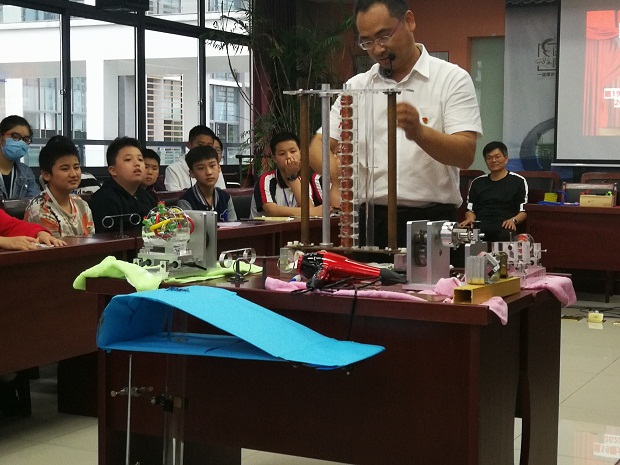 飞龙中学的周剑波老师和史旭东老师也把他们自制和发明的教具搬出来和同学们一起分享,大大激发了同学们爱科学、学科学的热情。