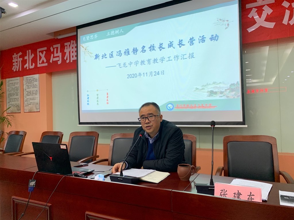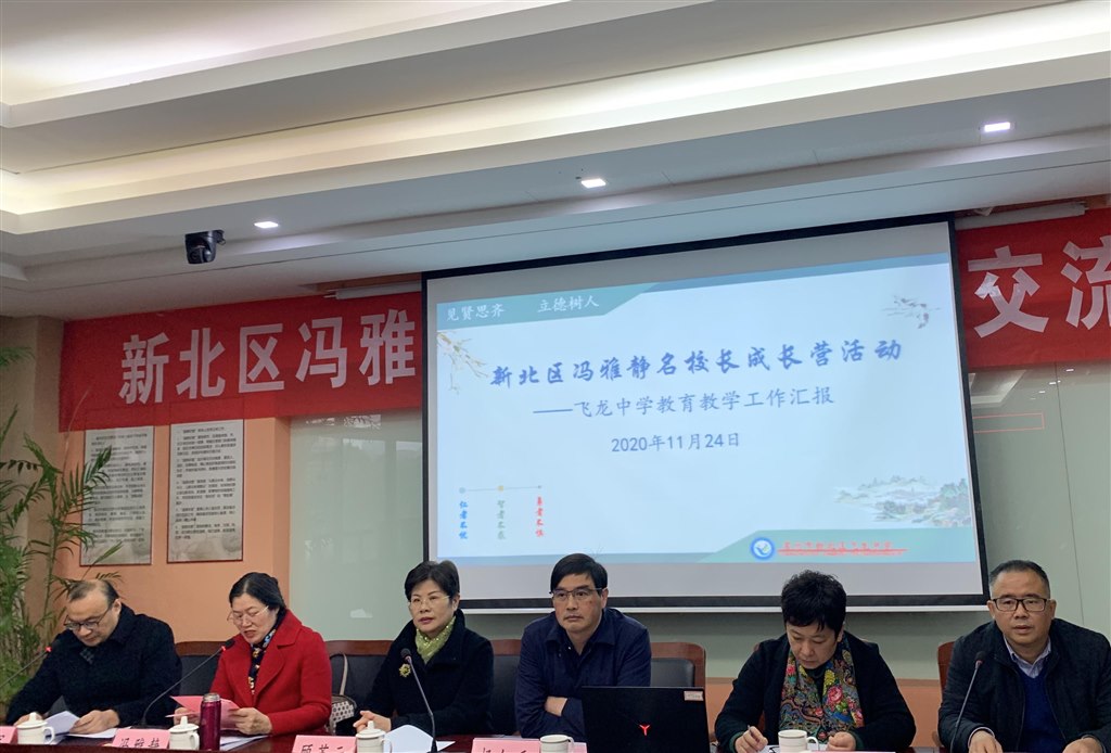 2020年11月24日,新北区冯雅静名校长成长营活动在新北区飞龙中学举行。本次活动主题为:跳出幼教看教育——主动性学习理念下的学校管理与课程建设的行动剖析,新北区名校长成长营全体成员及其他团队成员参加本次活动并积极参与了交流互动。活动由新北区龙虎塘中学校长黄亚军主持。