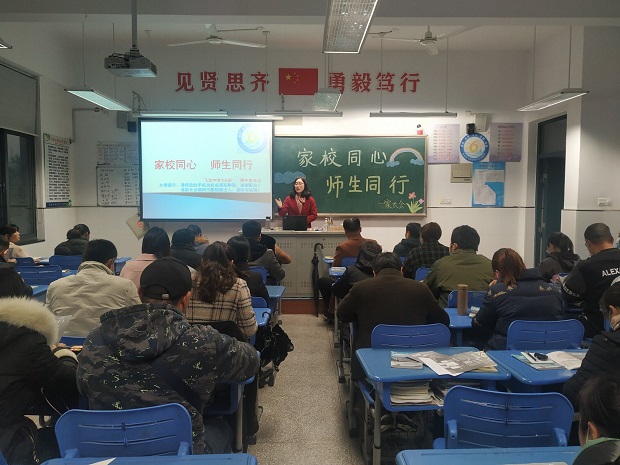 为了加强学校与家长的沟通、交流,广泛听取家长的意见和建议,搭建家校学习交流、研讨、互动的平台,形成教育合力,促进学生综合素质和学业水平的提高,11月27日16时20分,飞龙中学召开七年级期中家长会。