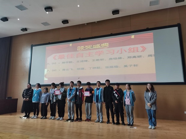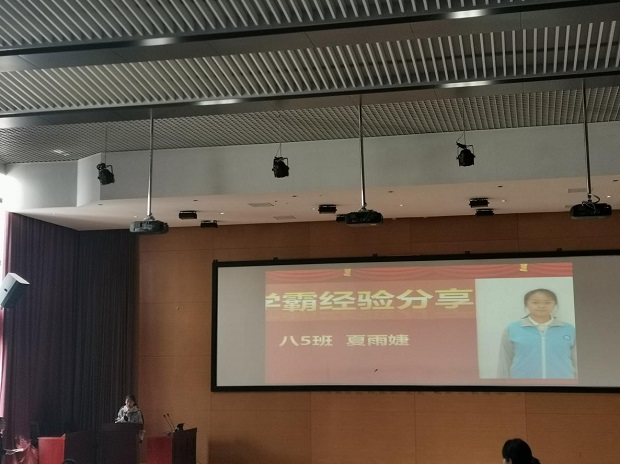 主持人霍达老师慷慨激昂,将本次表彰大会画划出三个篇章。第一篇章展现了八年级这学期以来的生活与学习情况,一张张照片随着悠扬的音乐跳跃出来,极具趣味的校园生活有声有色,无声胜有声的朗朗早读、思维迸发的自主探究讨论、乐趣横生的校内活动、欢声笑语的社会实践、共同进步的纯真友谊等触动人心。第二篇章是激动人心的颁奖时刻,通过半学期全体八年级师生的奋斗努力,我们取得了可喜的成绩,涌现出一批大批成绩优异、品学兼优的同学。这个环节由孙学闯主任和各班班主任上台颁奖,八年级11个班的学习之星、进步之星、优秀课代表、优秀班干部、文明礼仪之星、体育之星、最佳自主学习小组纷纷上台领奖,享受属于自己的荣誉!恭喜获奖同学之余,希望其他同学以受表彰的同学为榜样,顽强拼搏,奋勇直追,刻苦努力,争取进步。第三篇章是学霸经验分享,由八5班的夏雨婕同学分享自己在学习之路上的心得体验,介绍了行之有效的学习态度、学习方法和学习观念,标榜努力与坚持的意义,使同学们受益匪浅。第四篇章展示了励志小视频,视频中的小女孩在滑冰比赛中坚持不放弃,一轮又一轮地发挥全力,最终夺得桂冠。这其实我们要以坚定的信念、饱满的热情、认真的态度、努力的付出,实现新的跨越,创造新的辉煌,让追求卓越的脚步永不止息,用智慧和汗水去实现自己的理想,为人生添彩,为学校争光!