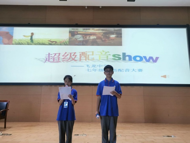 为了营造活跃的英语学习氛围,提高学生的英语口语表达能力,培养学生学习英语的兴趣,激发学生学习英语的热情,5月14日下午,飞龙中学七年级在报告厅举办了大家期待已久的英语配音大赛,担任本次活动评委的是八九年级英语老师,以及谢吟龙、周璐敏老师。
