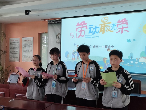 2021年4月29日下午,飞龙实验学校道德讲堂教室里洋溢着热烈的气氛,我们七年级8班《劳动光荣 脚踏实地》班会在此隆重举行。本次大会班主任李钱芳老师策划,学生梁晨舒,徐涵,王译伟和任楚桓主持,政教处盛飞主任出席了此次会议。
