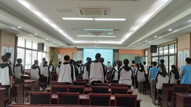 班级代表梁晨舒同学带领大家宣誓, 为了丰富我们的校园生活,锻炼我们的劳动自理,让我们懂得应该尊敬劳动,更要尊敬劳动成果。