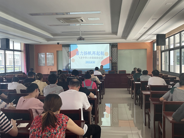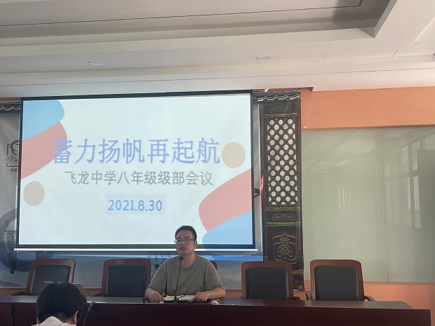 金秋丹桂飘香时,蓄力扬帆再起航。新的学年,新的学期,承载着新的梦想,孕育着新的希望。为营造浓郁、良好、有序的开学氛围,激励教师以崭新的姿态、饱满的激情投入到新学年的教学生活中,飞龙中学于8月30日召开了八年级级部会议,会议由级部主任何曙主持,副校长严怀虎出席会议并发表重要讲话。