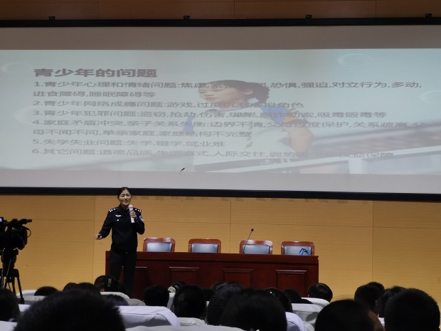 讲座期间,陈警官还和学生进行互动提问,针对校园中易发生的校园欺凌行为向同学们介绍了预防和阻止校园欺凌的有效方法,并且倡议全校师生抵制校园欺凌,共建平安校园。