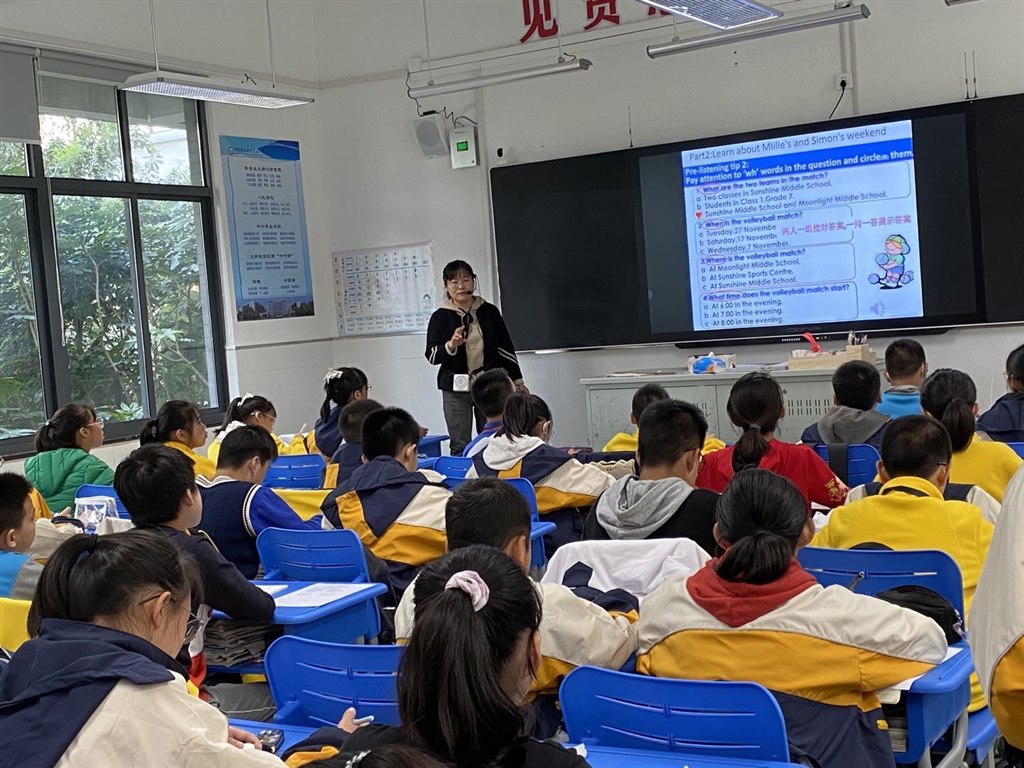 谢雯霞老师在七年级开设的这节听说课富有感染力,注重实效。面对学习习惯尚未规范的新初一学生,谢老师语调温和,循循善诱。听力过程指导细致,培养学生听前预测文本内容,听中写关键词、缩写,在细节中关注学生。对于学生的每次发言,谢老师用心倾听,评价到位,让学生在收获知识的同时,感受到了上课的快乐。