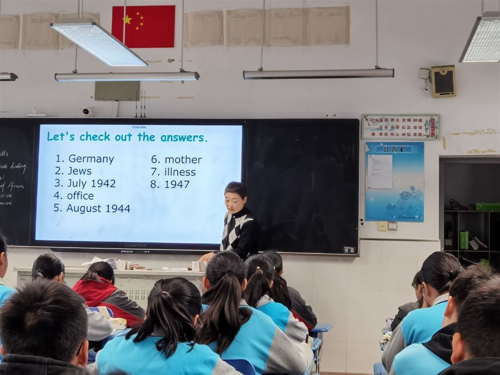 周佳娴老师运用多模态教学,充分激发学生学习兴趣。借助视频与图片创设情境,让学生身临其境感受到了二战的残酷。周老师的课过渡流畅,重在反馈,充分利用小组合作化繁为简、加强学生之间的交流,培养语言素养。本节课的最后,周老师再现笔记中的原文,让学生直观感受到了这个犹太女孩面对战争,依然心怀希望、永不放弃的精神。