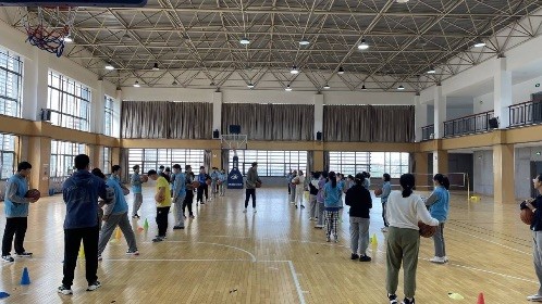 2021年10月14、15日体育组周洁琼、刘一桥、陆晓炜老师给大家分别上了《绕杆运球》、《篮球体前换手变向运球》、《快速跑》示范课。课的开始,周老师采用了“花样跑”、“球操”的热身方式,让学生在课的开始提高兴趣,快乐热身。基本部分教师采用各种方式的运球,让学生探究体会,进而集体探讨,“合作练习”、“一球多用”、“一球巧用”等环节让学生在快乐中主动参与,快乐达成教学目标。刘老师的篮球运球课,采用两人合作、多人合作、师生互动、生生互动等方式有效调动学生学习的积极性,课堂效率高。陆老师的快速跑课,“一绳多用,一绳巧用”让一节枯燥的跑步课瞬间活跃起来,参与性强,合作性高,课堂上一片欢声笑语。示范课上欢声笑语,让我对师生关系有了更深一层的理解。