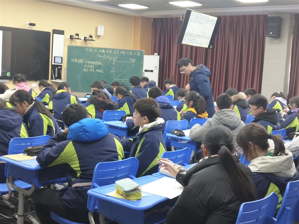 今天听了钱程老师的一节课,感触很多。钱老师作为区基本功竞赛获奖者,展现了扎实的教学基本功和数学学科素养。这节课,钱老师的多媒体运用炉火纯青,函数中的行程问题,能够以几何画板的形式呈现给学生,令人耳目一新。这种直观呈现帮助学生节省了很多思考时间,能够把更多的精力用在解决问题的策略探究方面;其次,钱老师很注重引导学生掌握解题方法,对于学法的指导很有独到之处,在这样的课堂里,学生能够学有所获。