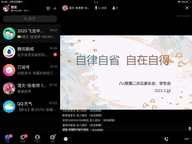 为了有效地引导学生科学开展居家学习生活,达到家校共育的目的,飞龙中学在校长室、政教处等部门的统一部署下,各班主任积极沟通,群策群力,精心准备,通过钉钉直播、腾讯会议等方式,有序高效的举行了居家学习的第二次家长会。