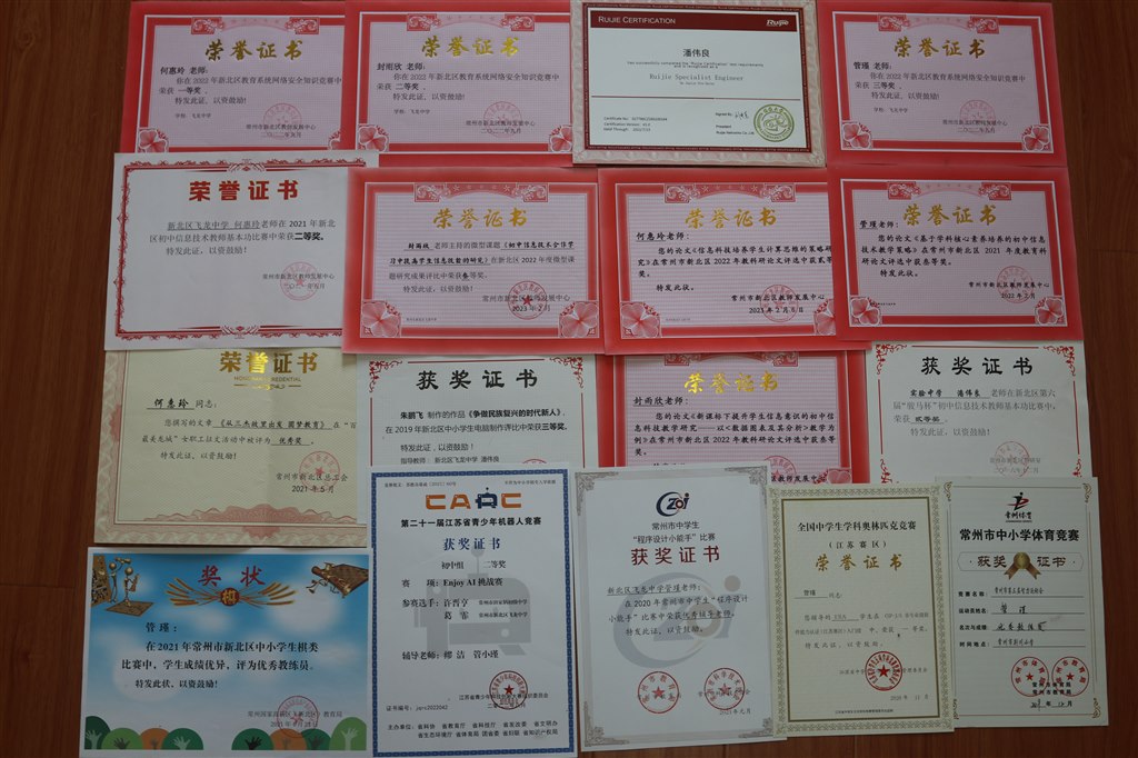 飞龙中学趣味编程社团创建于2017年,由常工院查志琴教授与我校信息组老师联合开设,在2019和2020年度多次指导学生获得一二三等奖的称号。趣味编程社团的格言:弹指一瞬间,键盘敲出精彩。