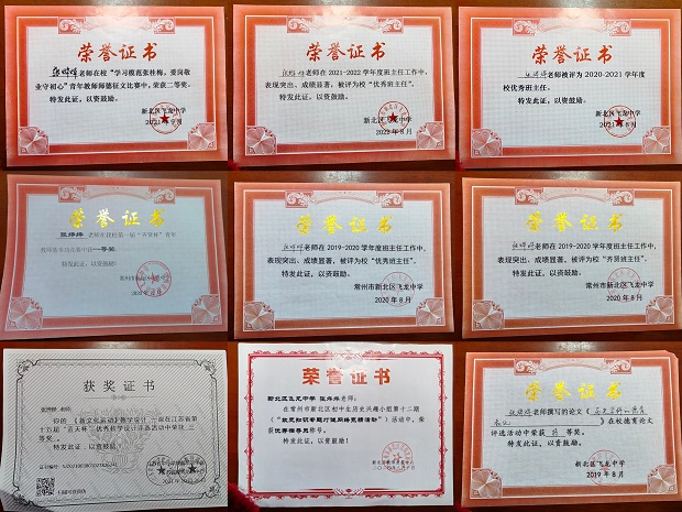教育上,她关爱学生,润泽心灵,所带班级朝气蓬勃,每年被评为“校文明班级”,所带班级曾被评为常州市先进班集体,获得学生、家长和任课老师的一致好评,曾获得新北区优秀班主任、新北区优秀教育工作者等称号。
