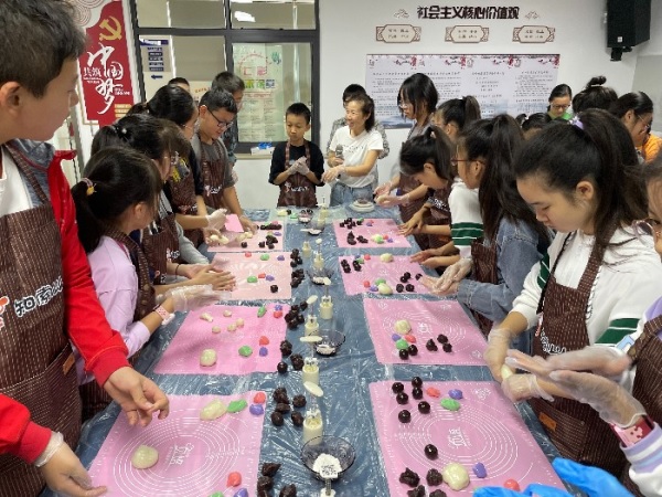 欣赏完油画,学生们又参加了手作冰皮月饼的活动,庆祝即将到来的传统中秋佳节。