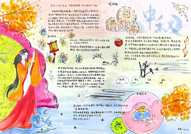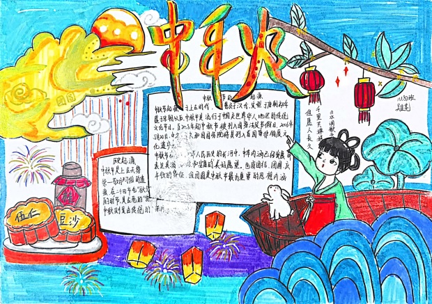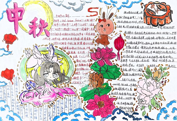 中天一轮满,秋野万里香,这是家国同庆的中秋;有水千江月,无云万里天,这是岁月静好的中秋。为弘扬中华民族传统文化,让学生感受这浓浓的节日氛围,飞龙中学举行八年级中秋手抄报评比活动。