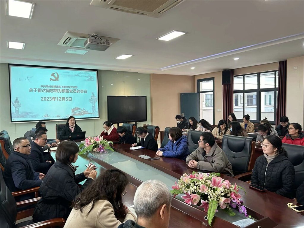 为进一步加强党组织建设,落实党支部发展党员工作计划。2023年12月5日,飞龙中学党支部在会议室2召开霍达同志预备党员转正大会。大会由飞龙中学副校长盛飞主持,全体党员参加了会议。