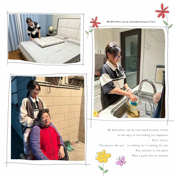 为了发扬“孝老爱亲”的优秀品质,同学们利用周末亲身体验,有的帮长辈捶捶背、捏捏肩,有的洗衣服、洗碗拖地,做一些力所能及的事情,与家人在一片祥和中分享重阳糕的美味。有的同学走进社区,服务社区,为空巢老人送去温暖。
