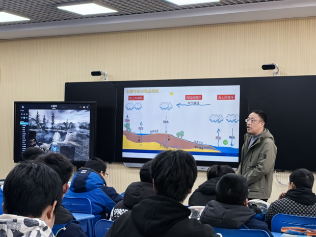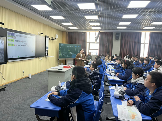 首场活动聚焦"水循环"主题的地理与生物跨学科教学。地理教师徐锋与生物教师祖翠翠联袂执教,利用VR技术,带领学生多维度理解水循环过程。跨学科课堂打破了知识壁垒,激发了学生的科学思维,现场观摩教师纷纷点赞:"地理与生物的深度交融,让自然规律‘活’了起来。"
