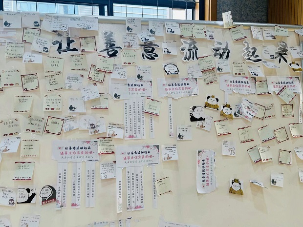 “积极心理签”、“让善意流动起来”处,同学们抽取写有积极话语的纸条、温暖的话语,将这些温暖而励志的文字传递给身边的每一个人,就如同一束束阳光,照亮了同学们的心灵,激励他们在面对困难时保持坚定和乐观。