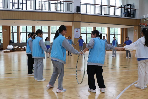 在充满欢乐与协作的游戏环节——“一圈到底”和“桃花朵朵开”中,同学们手拉手,齐心协力,在欢声笑语中增强了团队凝聚力,释放了学习压力,同时也收获了珍贵的友谊。