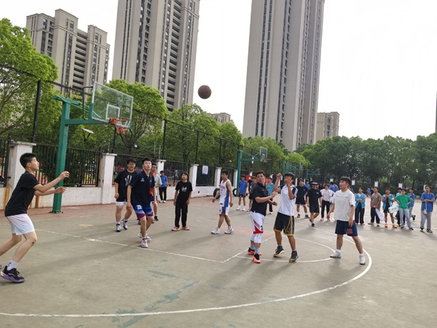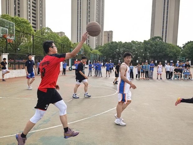 比赛尚未开始,球场便已热闹非凡。乌央乌央的拉拉队吸引了众多师生驻足围观,大家纷纷为自己的任课老师加油,或是为同班级的学生助威,现场气氛被点燃。双方队员严阵以待,学生队由各班选拔出的优秀队员临时组队,尽管5名队员来自不同班级,却已配合得相当默契。他们朝气蓬勃、活力四射;教师队则阵容强大:何晨凯、刘一桥、何昀豪、李羽中、奚宸、张浩天、潘伟良等老师悉数登场,汪校也亲自披挂上阵,老师们沉稳自信,一场精彩对决一触即发。