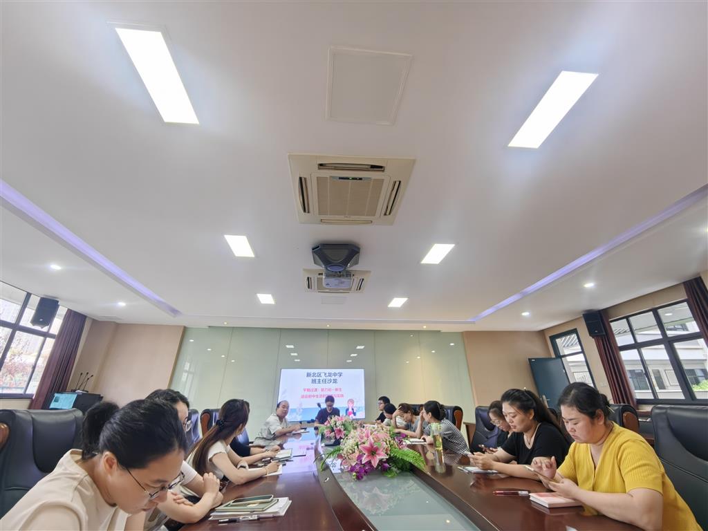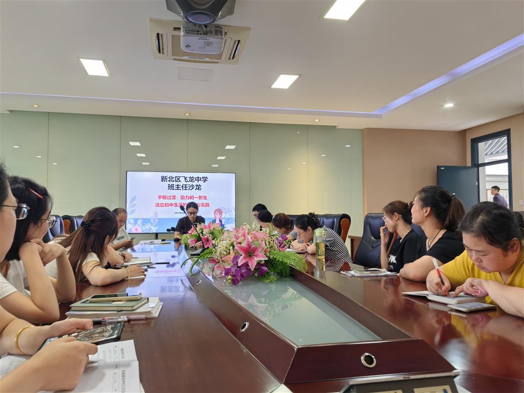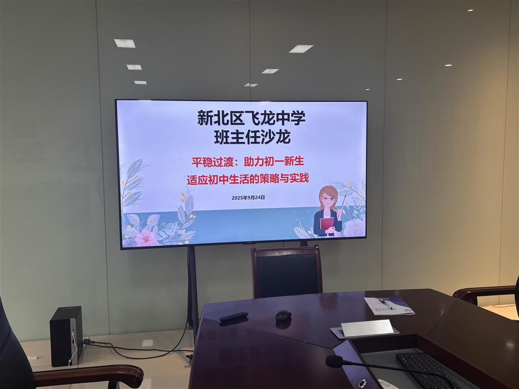 为帮助初一新生尽快适应初中生活,2025年9月24日中午,新北区飞龙中学开展了以“平稳过渡:助力初一新生适应初中生活的策略与实践”为主题的班主任沙龙活动。本次活动由七年级级部主任谢吟龙老师主持,飞龙中学副校长盛飞莅临指导,七年级全体班主任积极参与。