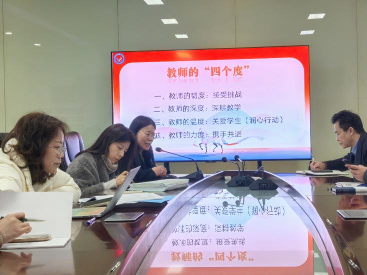 随后,分管校长谢校长发表指导性讲话,为新学期年级教育教学工作把脉定向、凝心鼓劲。她首先对八年级年级组过去一学期全体教师的辛勤耕耘与取得的显著成效给予充分肯定,向坚守一线、默默奉献的全体教师致以诚挚问候。结合马年奋进精神,谢校长对全体教师提出明确期望,强调教师队伍建设要坚守“四个度”——以“韧度”扛责担当,勇于直面教学管理中的各类挑战;以“深度”深耕课堂,潜心钻研教材教法、提升专业素养;以“温度”关爱学生,用爱心与耐心呵护青春期学生健康成长;以“力度”凝聚合力,心往一处想、劲往一处使,携手共促年级发展。同时,谢校长寄语全体教师,要兼顾工作与生活,争做健康幸福的教育者,以自身的积极状态感染学生、引领学生,着力培养出身心健康、乐观向上、全面发展的新时代青少年。