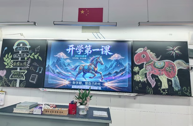 春风送暖,万物竞发。2026年3月4日,农历丙午马年的脚步踏歌而来。常州市新北区飞龙中学的校园里,洋溢着蓬勃的朝气与崭新的希望。告别了寒假的静谧,全体师生以“跃马扬鞭”的奋斗姿态,共同“福启”新学期的征程。