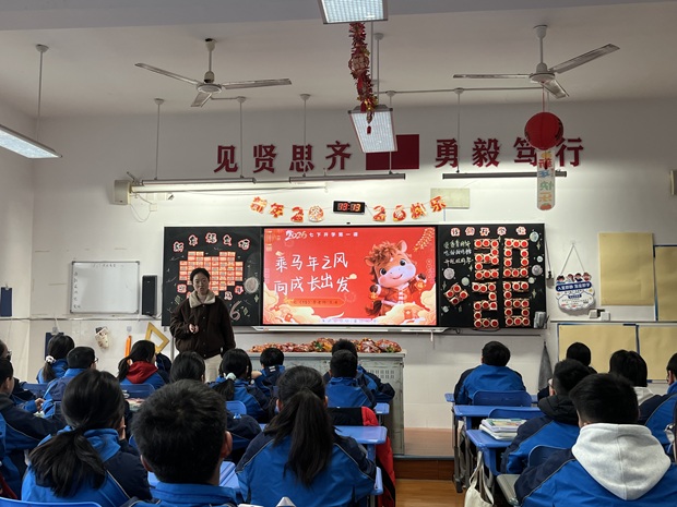 下午各班级围绕新学期规范、目标与梦想,开展了形式多样的主题班会。有的班级通过视频回顾了充实而温馨的寒假生活;有的班级则围绕"马年精神"展开热烈讨论,探讨何为奋斗、何为坚持。
