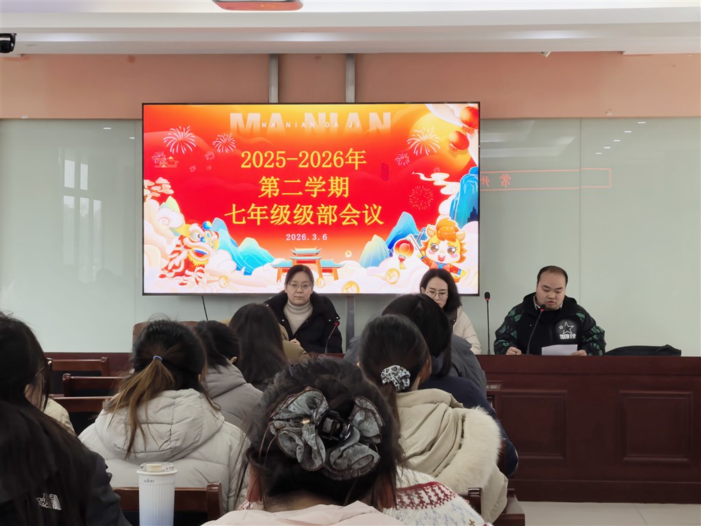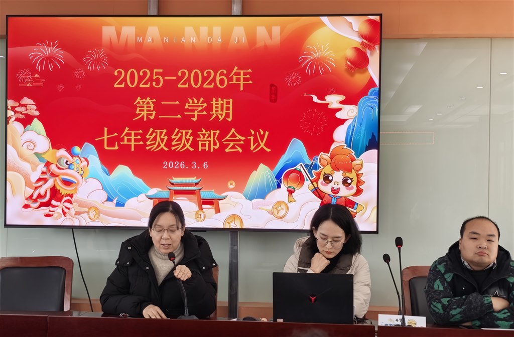 为总结工作、明晰方向,部署任务,2026年3月6日中午,飞龙中学召开七年级下学期全体教师期初级部会议。会议全面复盘了上学期的工作成效,同时明确新学期重点任务,凝聚合力,七年级全体教师以昂扬姿态开启新学期育人新征程。